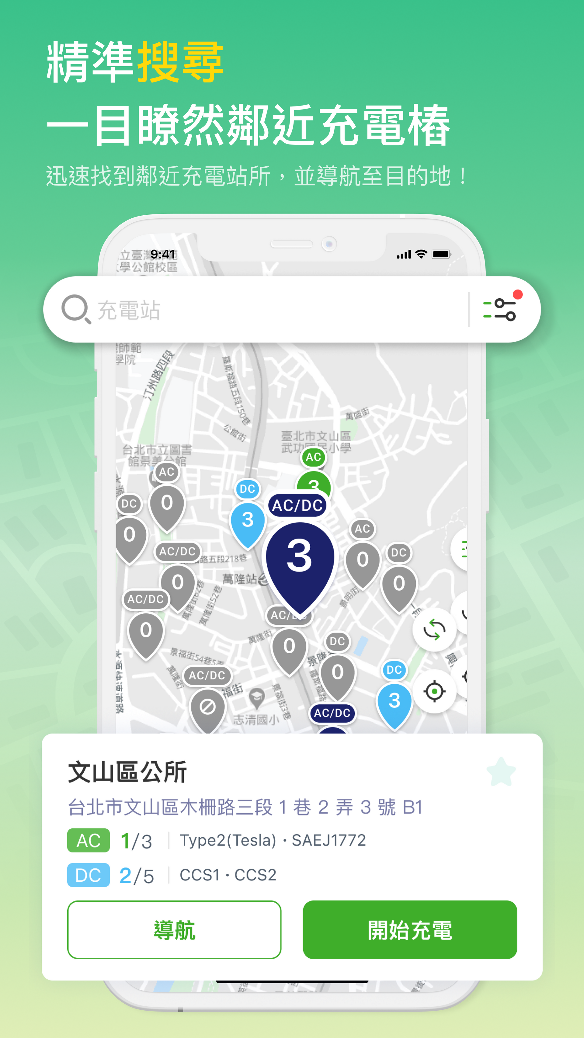 與Apple map 和 Google map 串接,依據車主喜好選擇圖資導航,一鍵抵達充電站。